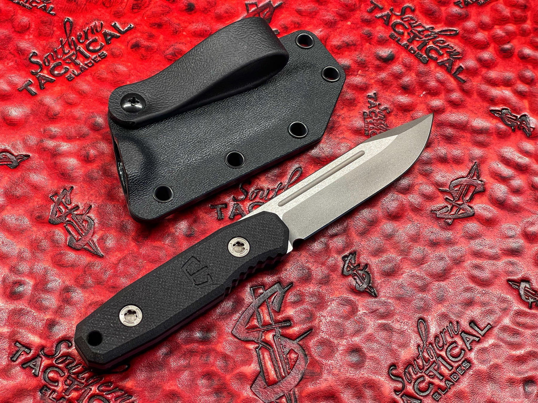 The Blackside Customs Plan B Covert is a purpose-driven fixed blade designed to deliver when it matters most. Measuring 8.5” overall, it features a 4” CPM-154 blade with a striking two-tone Graymatter finish, combining cutting-edge performance with modern styling.