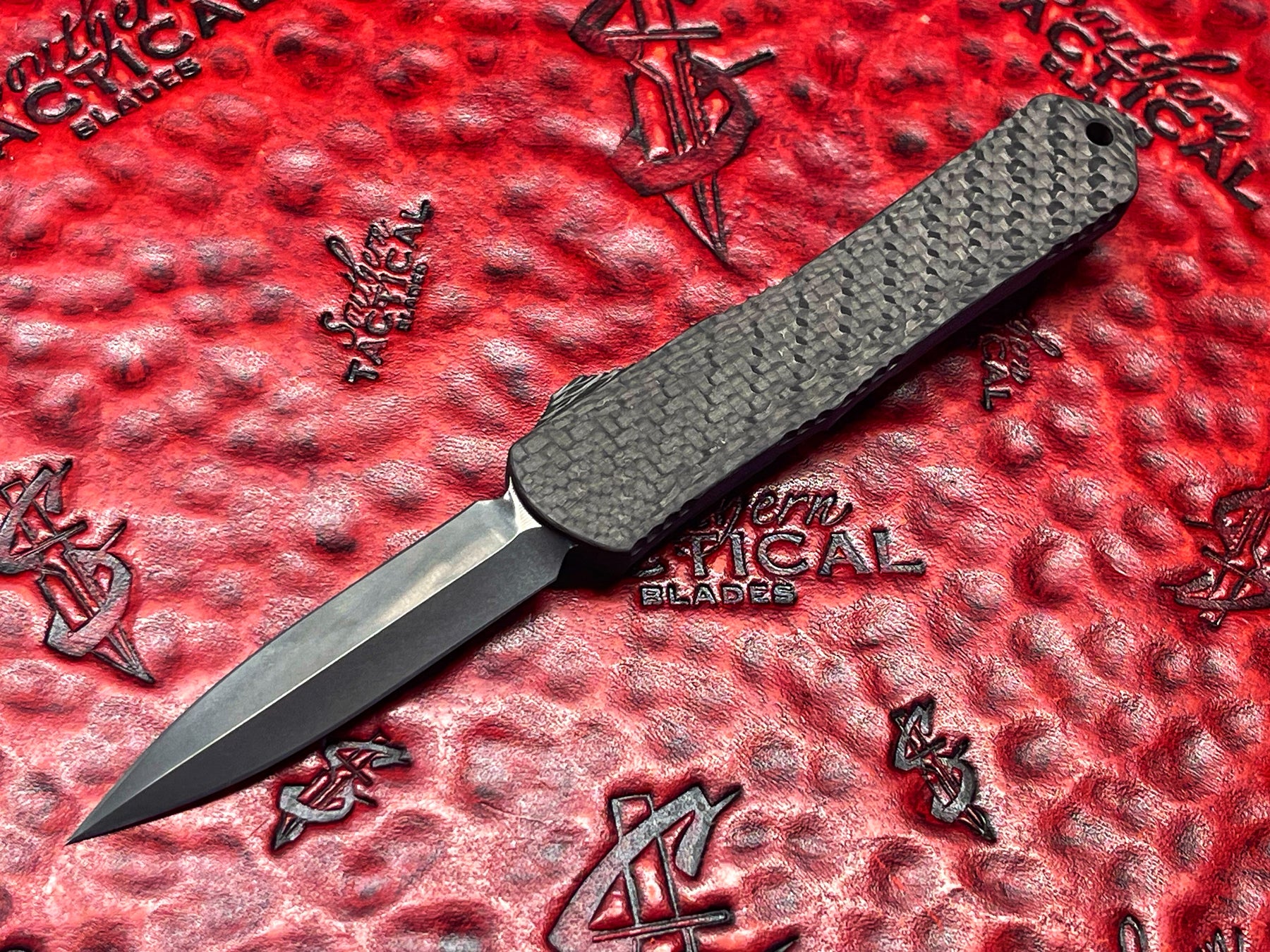 Heretic Knives Manticore S, Hand Ground Double Edge DLC Blade, Full Carbon Fiber Blade.