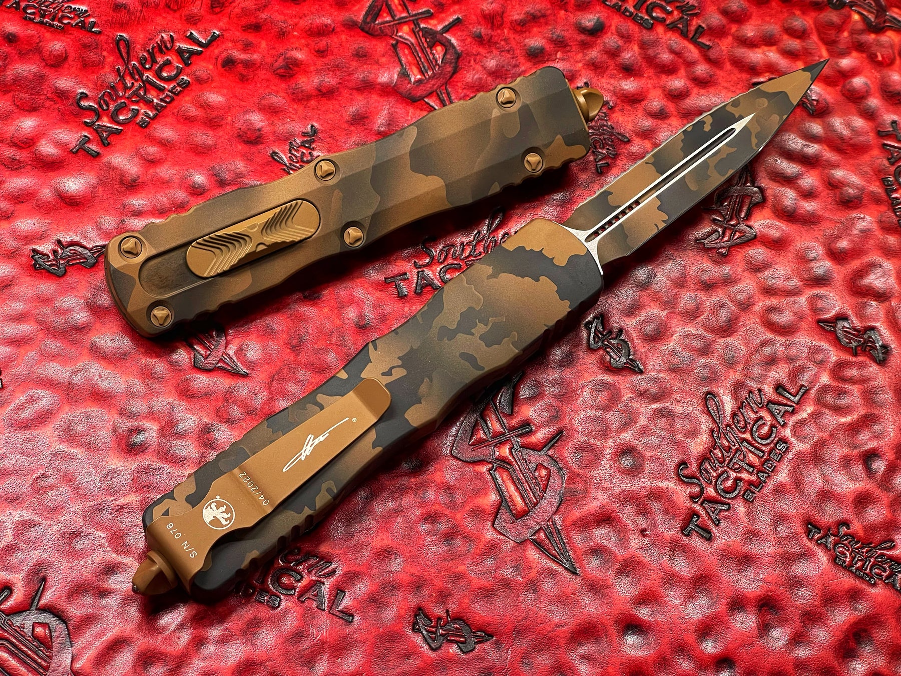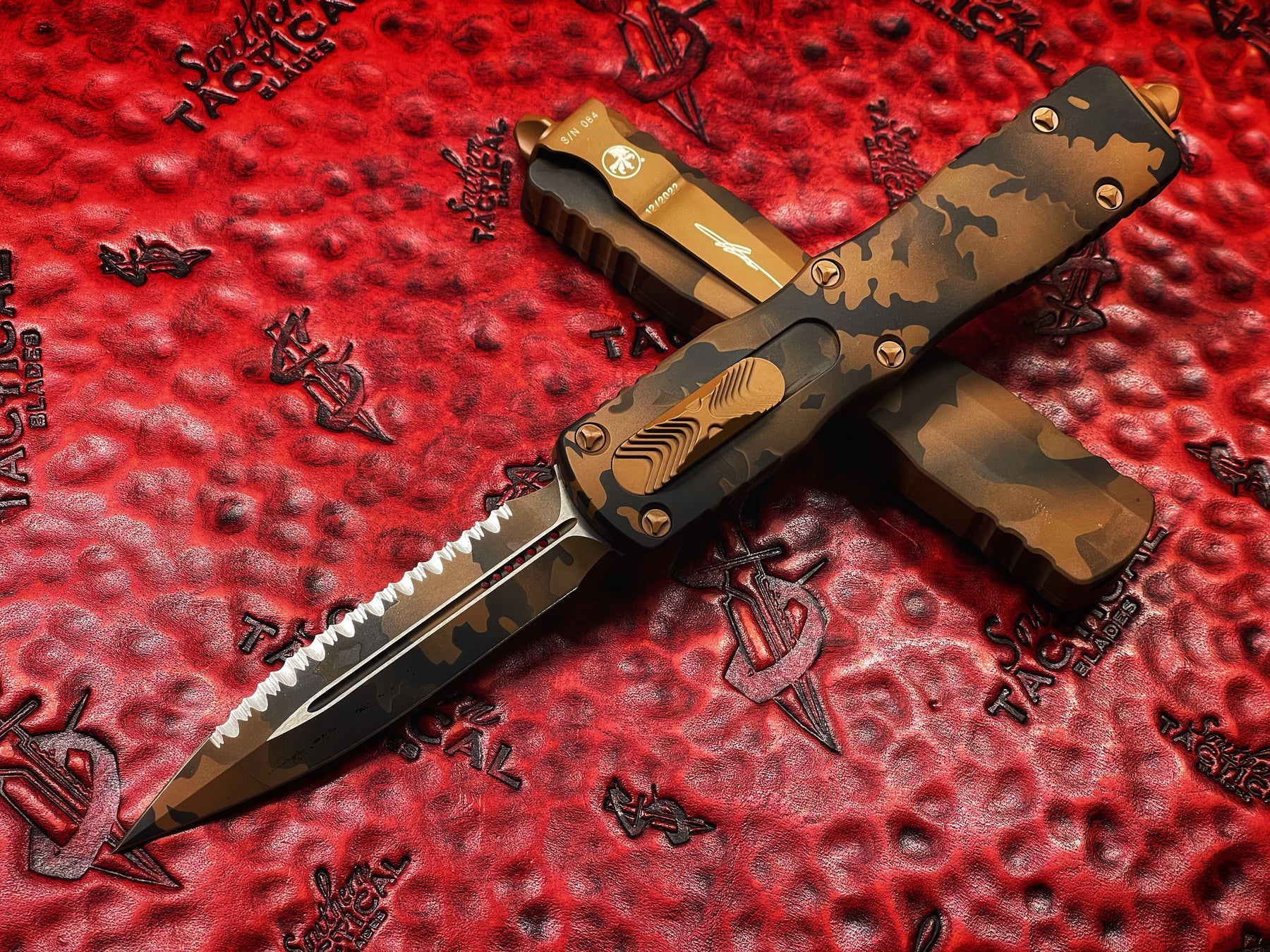 Microtech Dirac Delta Double Edge Cerakote Coyote Camo Full Serrated Signature Series