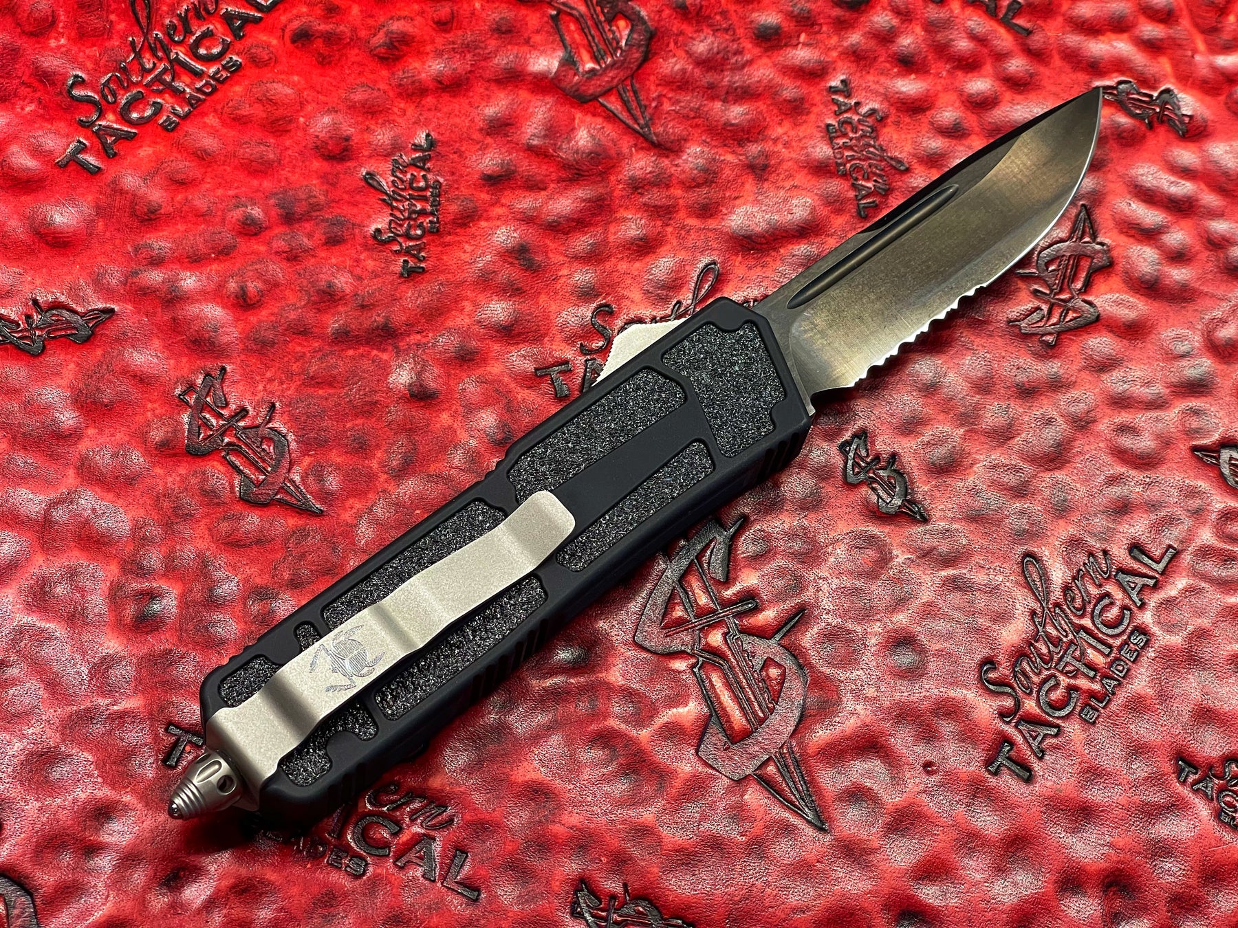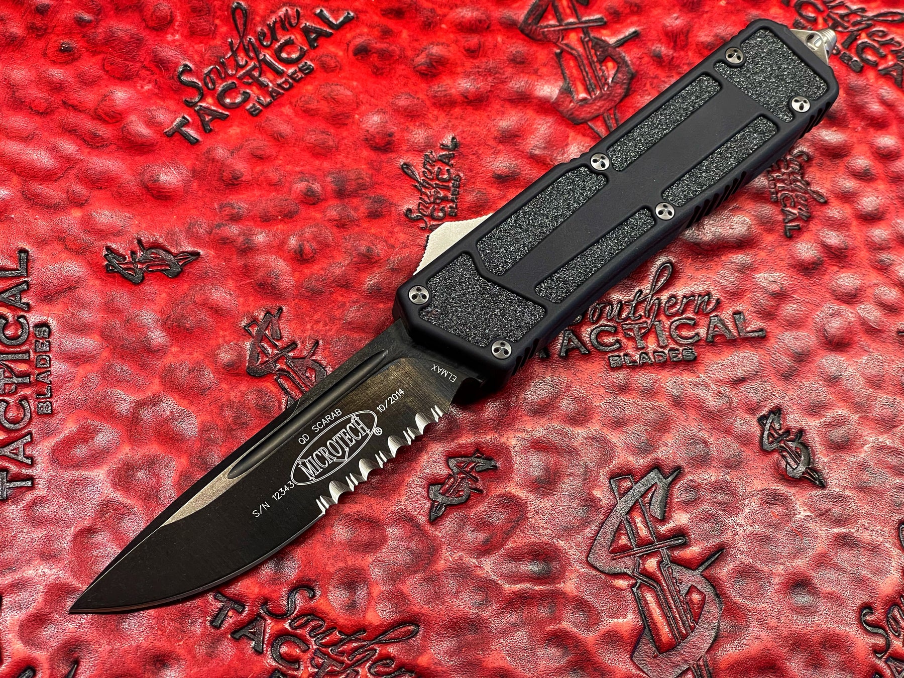 Microtech Quick Deploy Scarab, Single Edge, Part Serrated DLC, Standard Hardware, Double Action OTF Knife